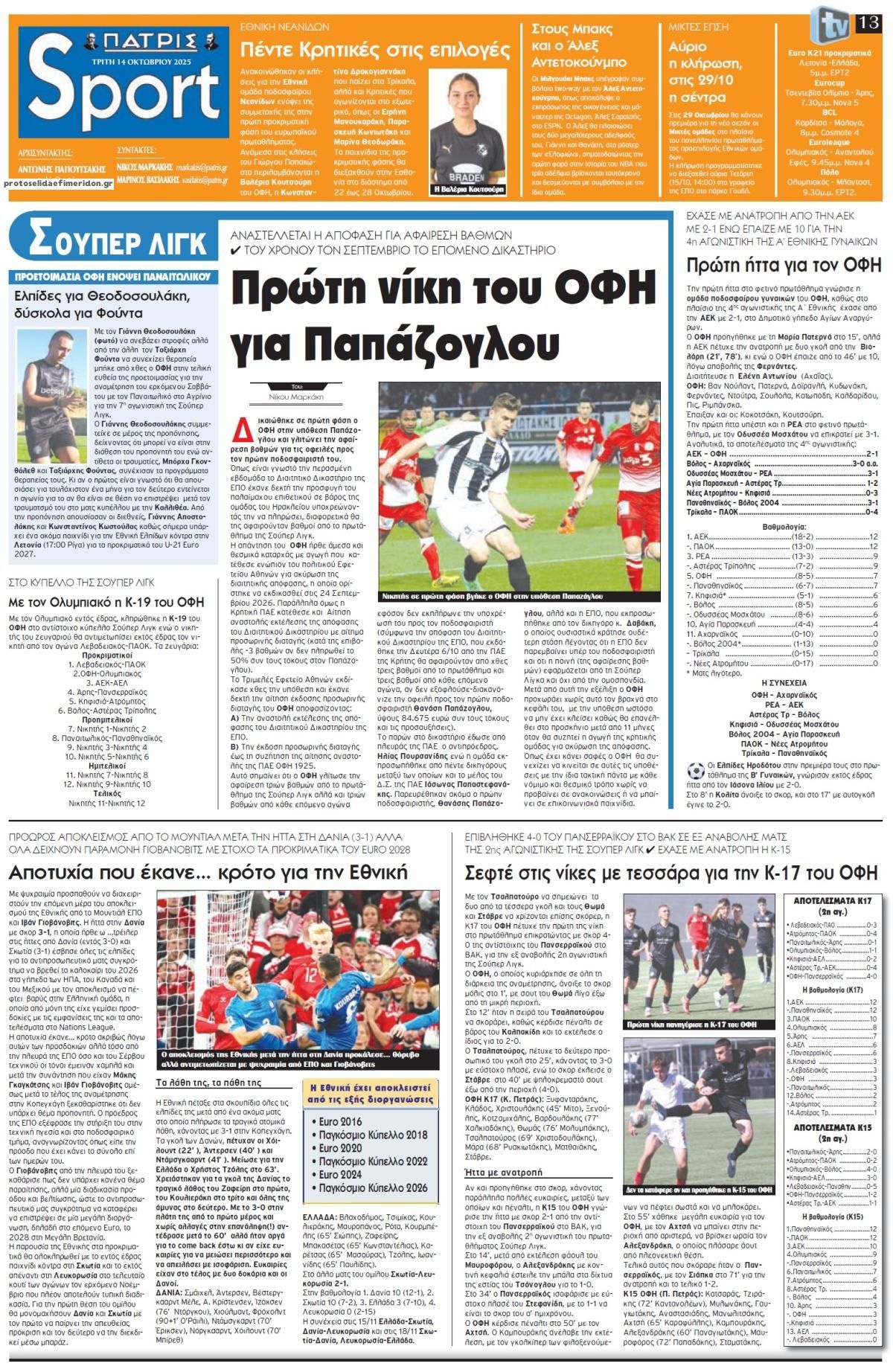 Οι αθλητικές μεταδόσεις της Τρίτης, 14 Οκτωβρίου 2025