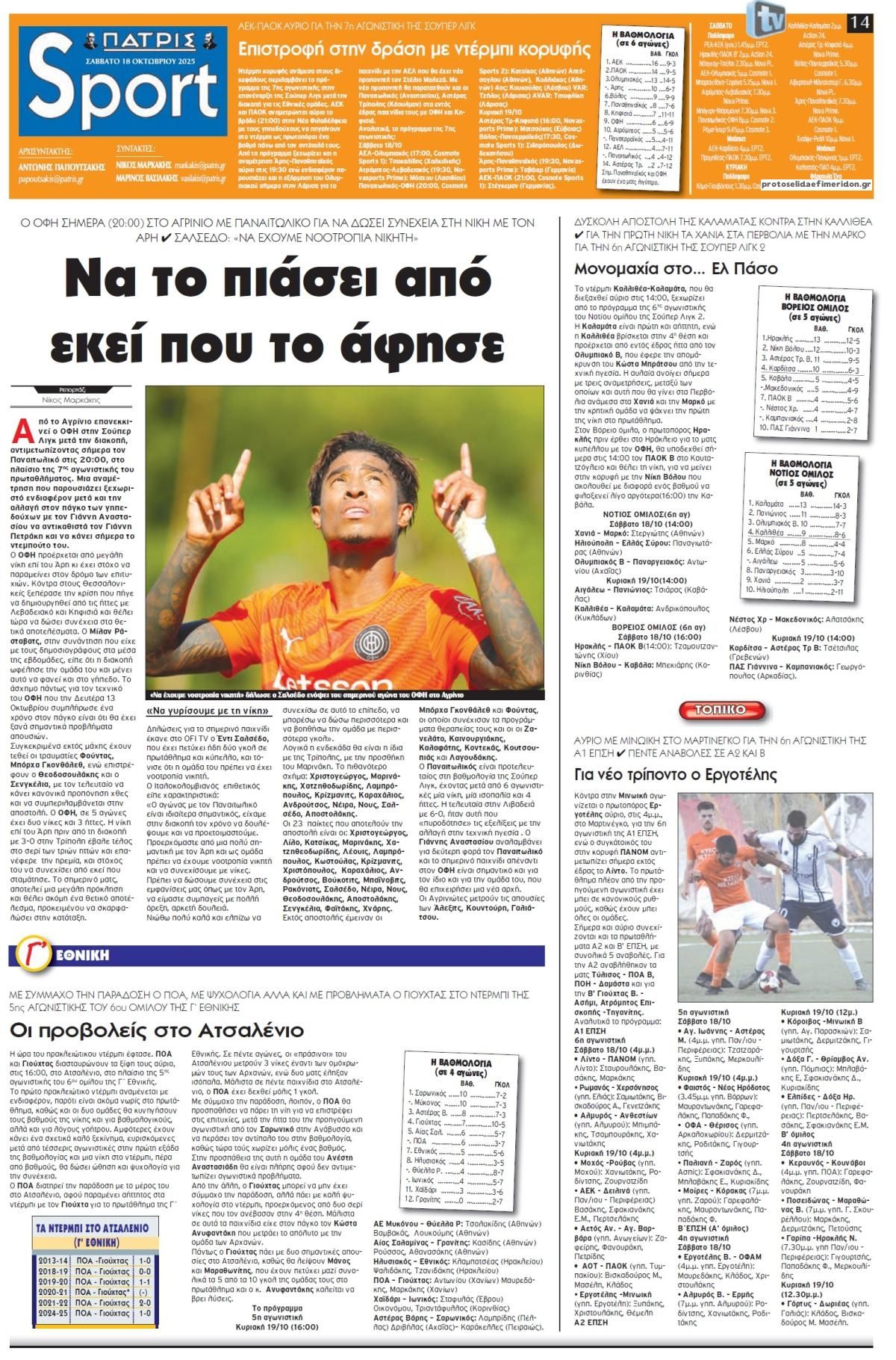 Οι αθλητικές μεταδόσεις του Σαββάτου, 18 Οκτωβρίου 2025