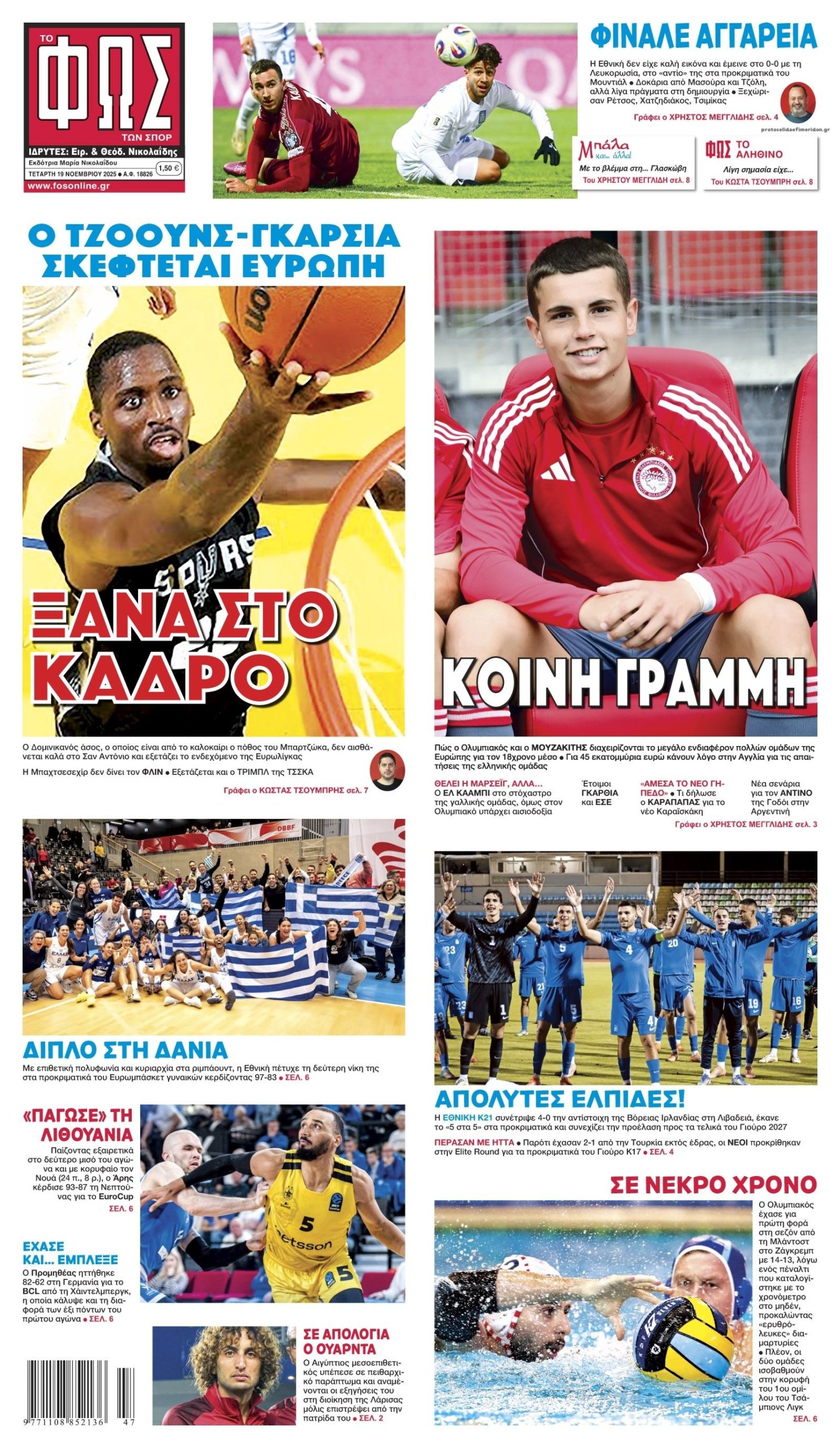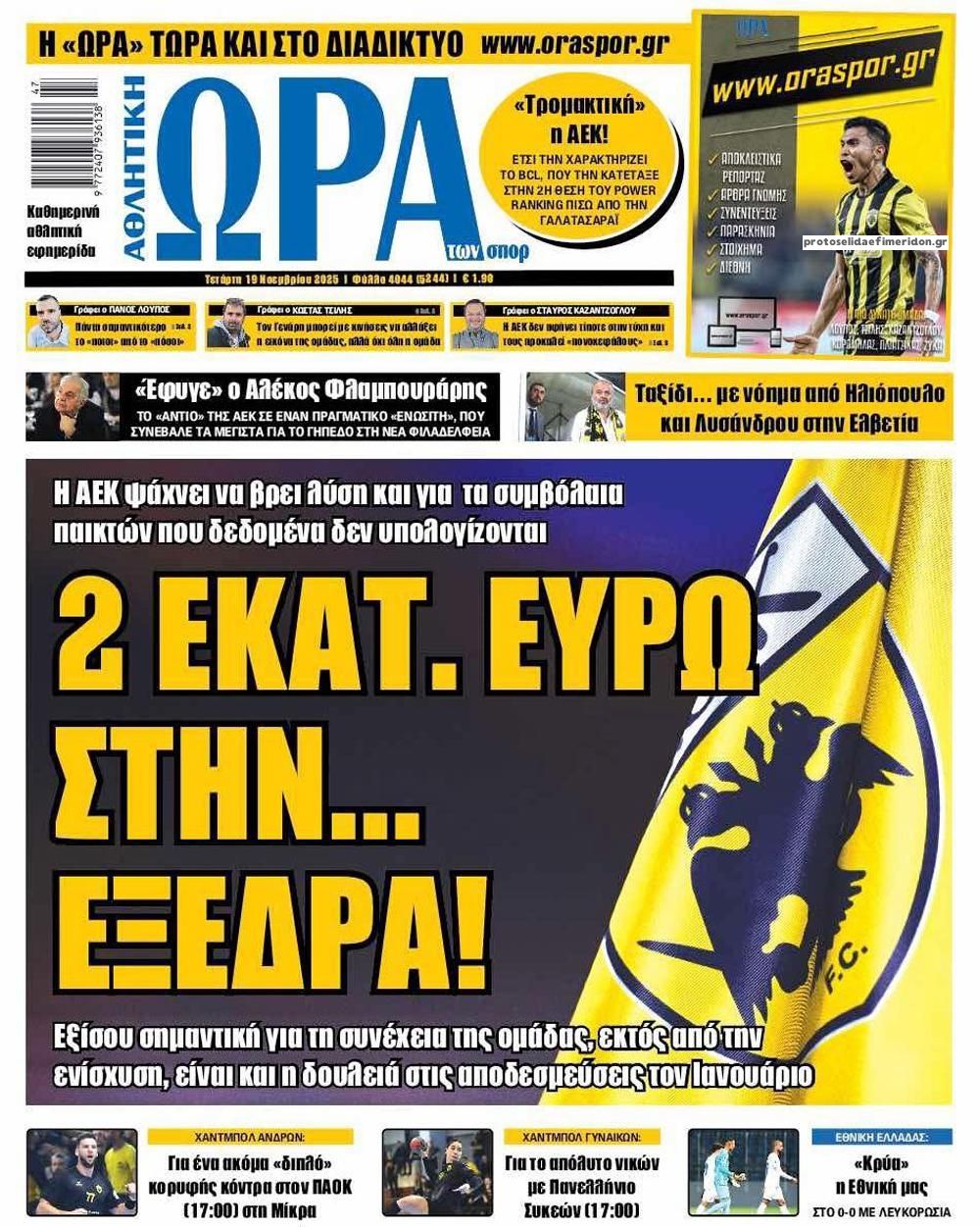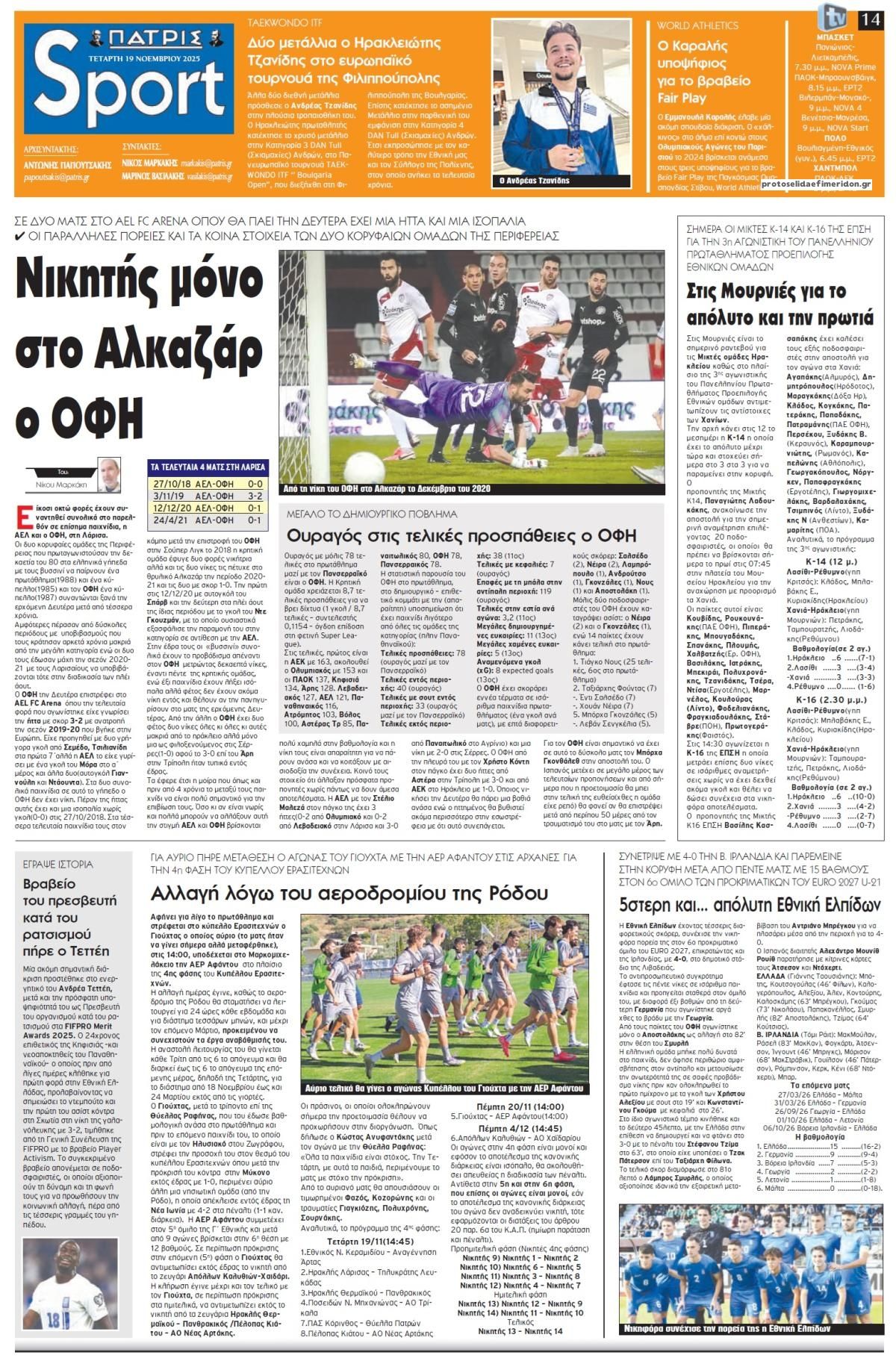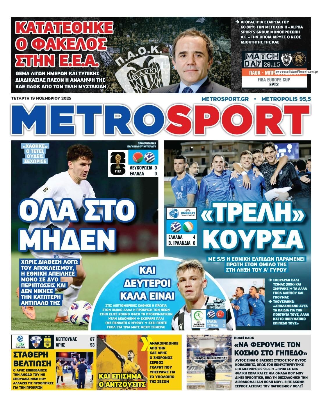 Οι αθλητικές μεταδόσεις της Τετάρτης, 19 Νοεμβρίου 2025